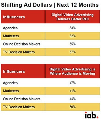 Ma il dato più interessante è che la maggior parte delle agenzie e dei professionisti del marketing abbiano pianificato di spostare gli investimenti pubblicitari televisivi a favore delle DVA: circa il 62% dei marketers ritengono che le DVA abbiamo un migliore ROI confrontato alla TV, mentre il 47% delle agenzie e il 50% dei decision-maker TV giustificano lo spostamento per seguire il loro target di pubblico.