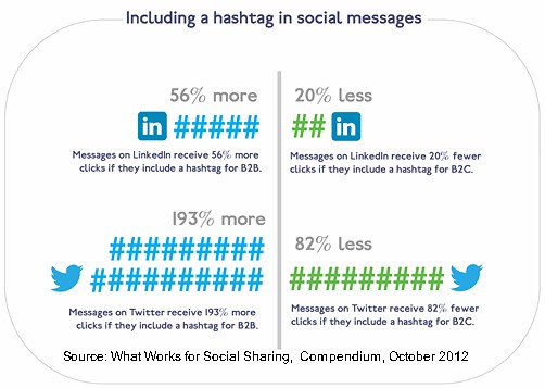 Non a caso, i messaggi B2B su Twitter generano il 193% di clic in più se includono un hashtag, ma i messaggi B2C su Twitter generano l’82% di clic in meno se ne includono uno.