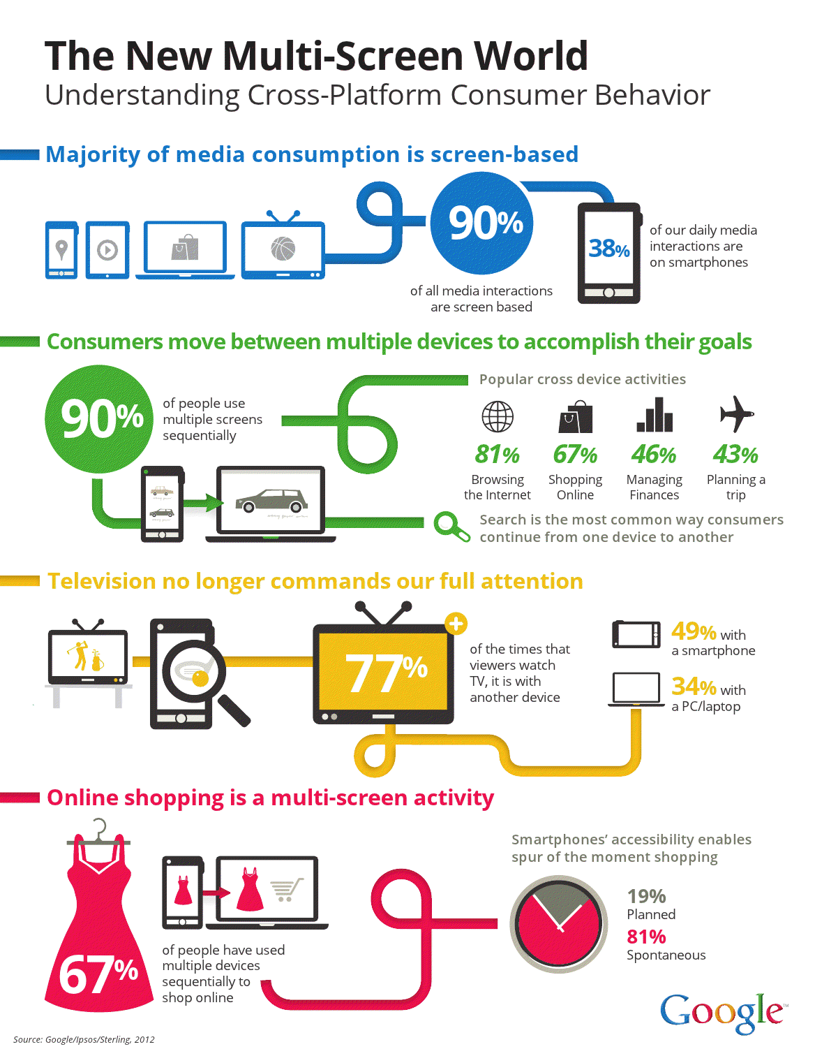 Trovo questa ricerca molto interessante. L’infografica allegata è di Google e mostra l’atteggiamento dei consumatori di fronte ad uno schermo.