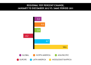 - Ad eccezione dell’Europa, tutti gli altri paesi hanno aumentato la loro spesa pubblicitaria nel 2012.